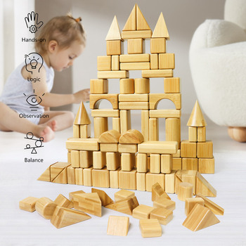 Cadeau d'anniversaire éducatif Montessori, briques en bois, château en bambou personnalisé, ensemble de blocs empilables avec sac de transport