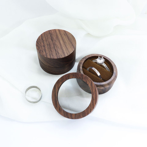 Boîte de rangement de bijoux unique pliable personnalisée boîte de bague vintage en bois de bambou proposition de fiançailles cadeau