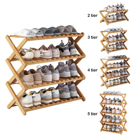 Étagère à chaussures pliable avec logo personnalisé étagère à chaussures pliable portable à 2/3/4/5/6 niveaux en bois bambou étagère à chaussures pliable
